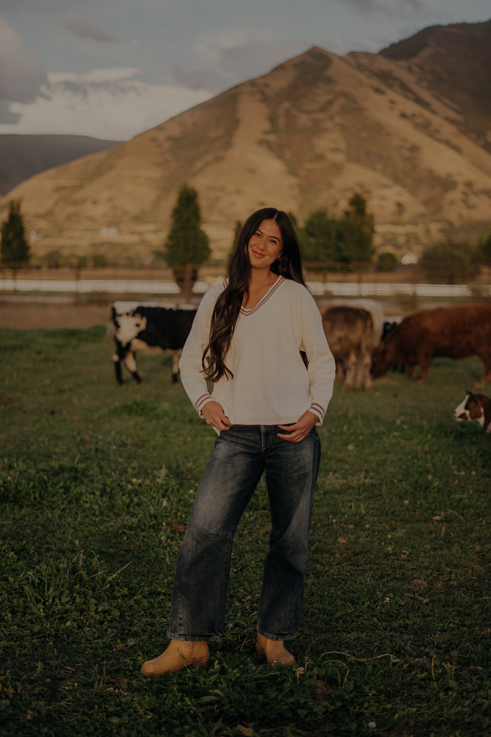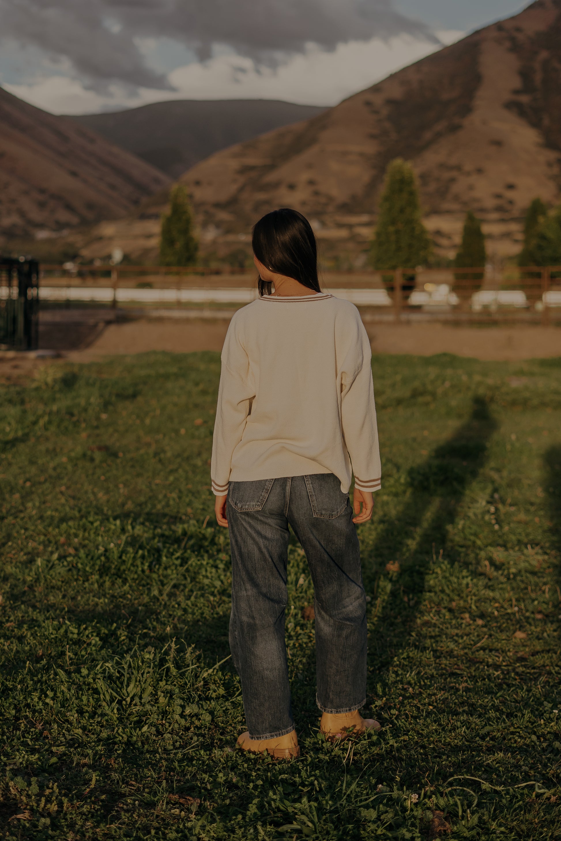 The perfect oversized sweater with the cutest brown accents. I will be wearing this every day.