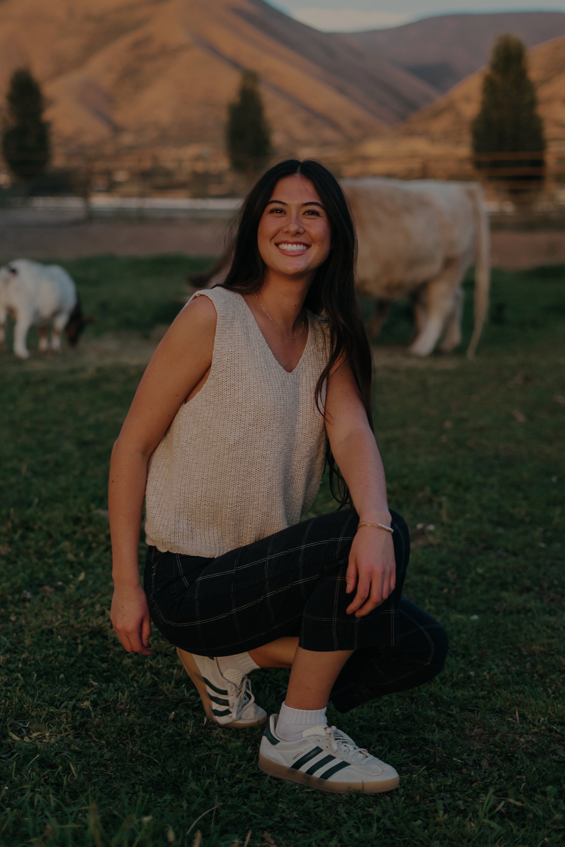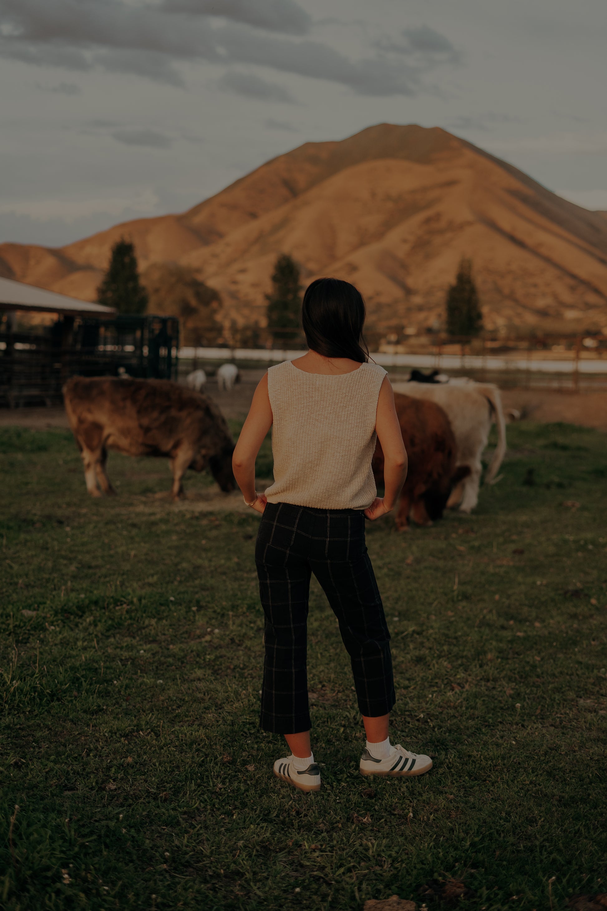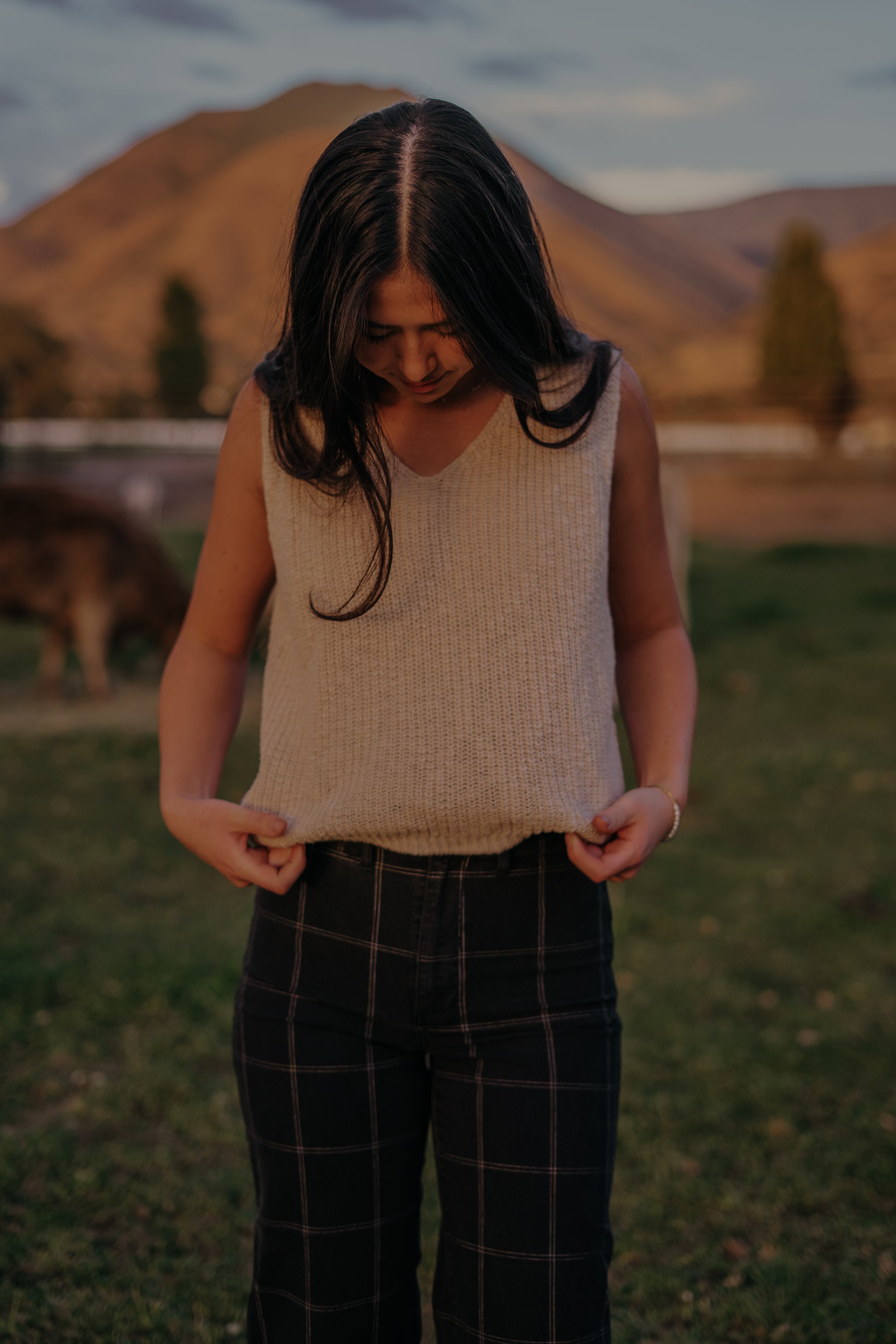 Knit Sweater Cotton Acrylic V-Neck Sleeveless Vest Top - Color is a light brown, very lightweight and the perfect sweater for transitioning into fall!